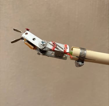 CREADO CON MATERIALES EXTREMADAMENTE SIMPLES COMO TUBERIA, LIGAS, POPOTES, CLAVOS UN POCO DE CINTA, SE CREA LA VERSIÓN 0.1
